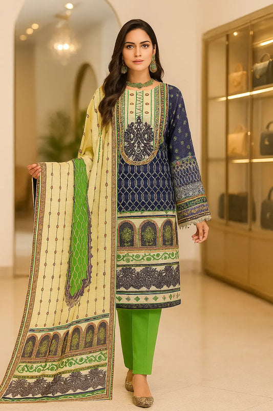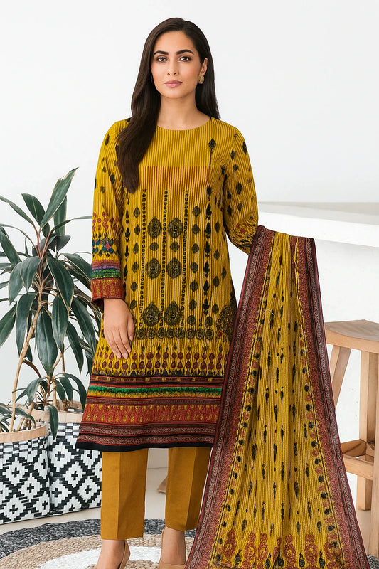 Refresh your summer wardrobe with this stunning Mustard Lawn 3 Piece Unstitched Suit for Women,...